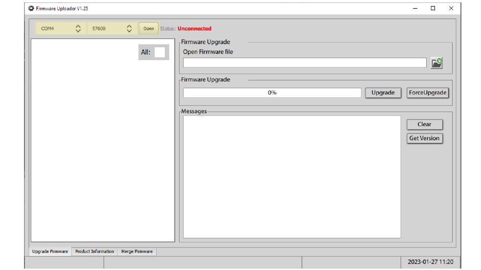 ファームウェアアップローダープログラムを開きます。(注:未リリース)