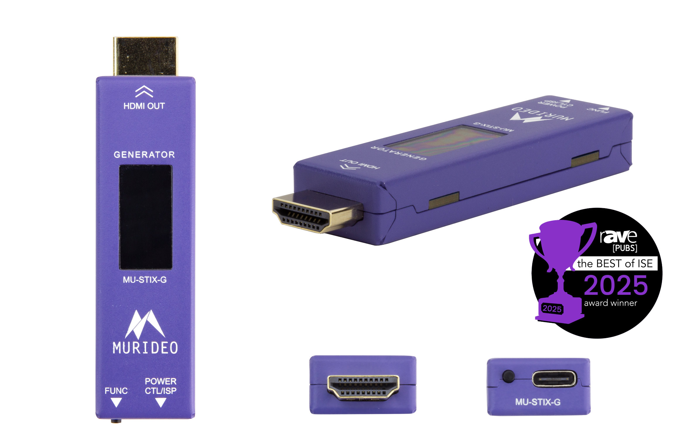 MU-STIX-Gは、Murideo社のSTIX大規模導入評価プラットフォーム向けに設計された、USBメモリサイズのHDMIパターンジェネレータです。また、現場での軽負荷な合否判定信号伝送検証にも使用できます。