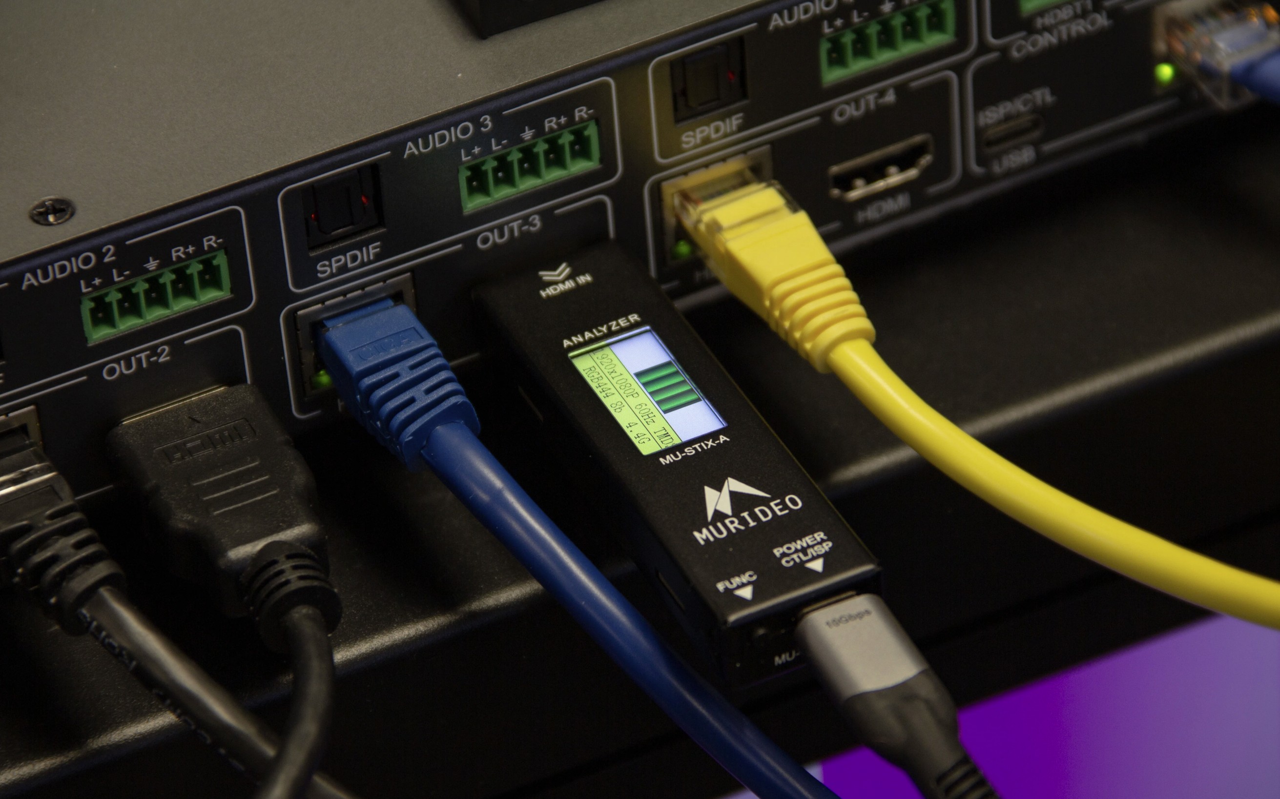 STIXは、現場への導入前に迅速かつ徹底的な社内信号スループット確認を可能にし、エンドポイントデバイスが正しく機能し、プログラミングに適切に応答し、システムパフォーマンスパラメータと整合しているかどうかを検証します。Murideo MU-STIX-Aオンボードディスプレイは、受信デバイスのHDMI出力に接続することで、ソース情報パラメータを物理的に検証します。