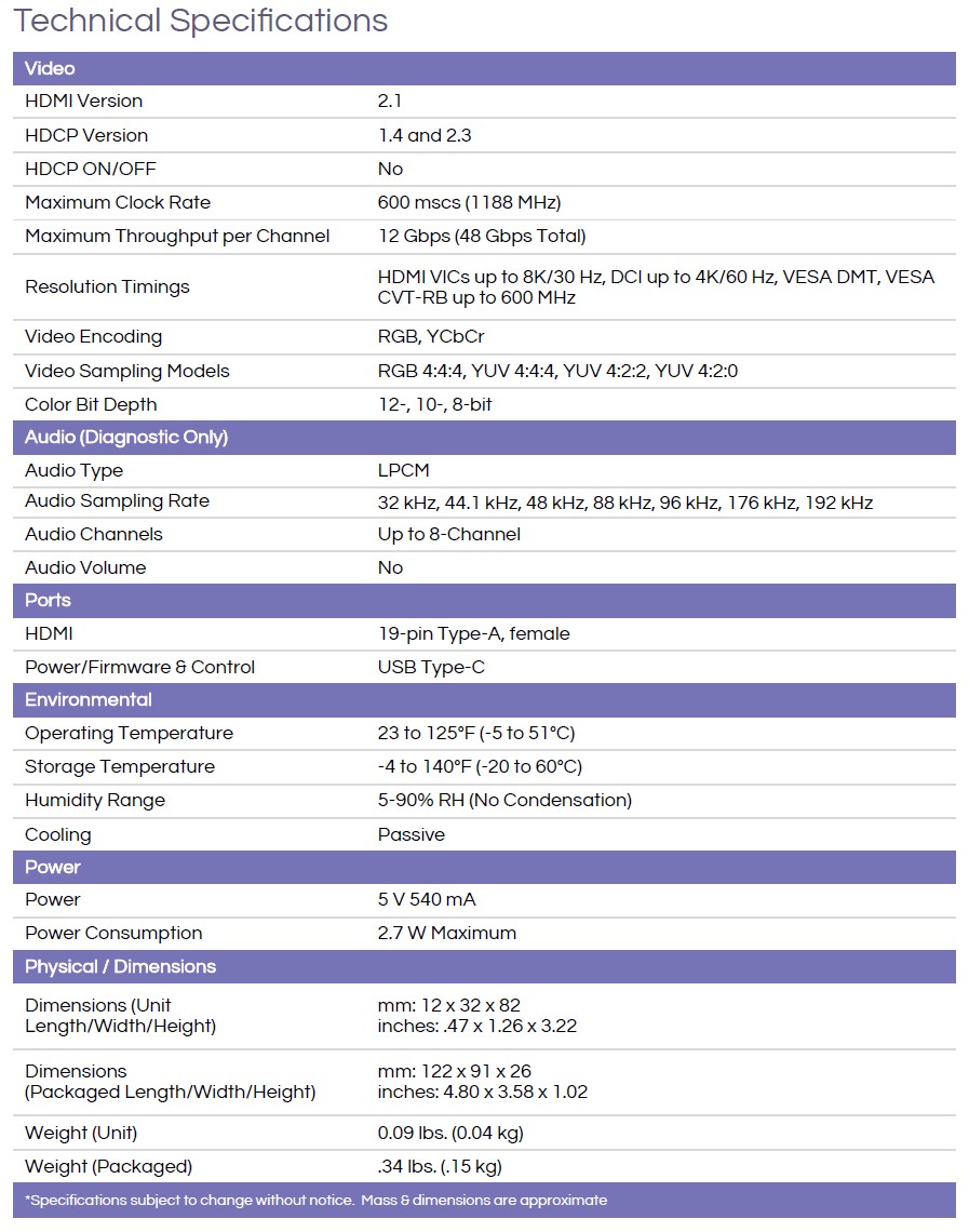 STIX-AFは、最大48Gbpsの先進的なHDMI 2.1(FRL)信号と従来のHDMI(TMDS)の両方をサポートし、最新およびレガシー信号経路の分析に最適です。最大8K/60Hzおよび4K/120Hzのビデオ信号を分析可能です。