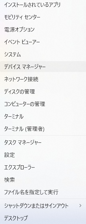 4. Windowsのスタートボタンを右クリックし、[デバイスマネージャー] を選択します。