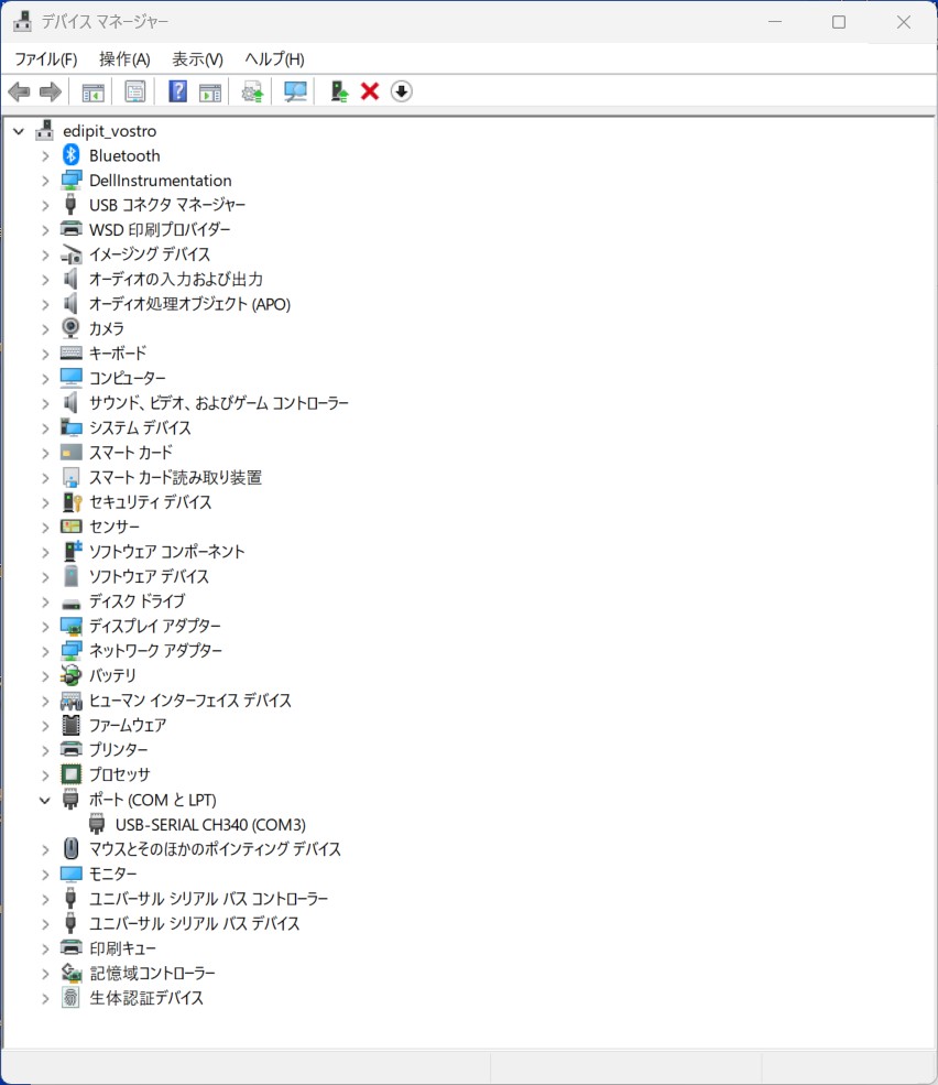 CH340 (COMX) を使用して、STIX-AF が PC に接続されていることを確認します。