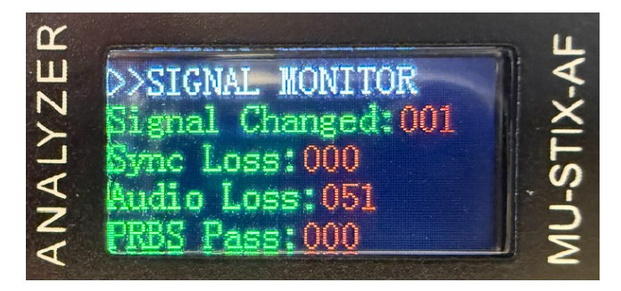 a. 信号変化機能を使用する際は、静的なテストパターンを使用することを推奨します。STIX-AFは毎秒、解像度、カラースペース、リフレッシュレート、RGBトリプレット値などのビデオ信号の変化をチェックします。いずれかのビデオフレーム値が変化した場合、その値は1増加します。