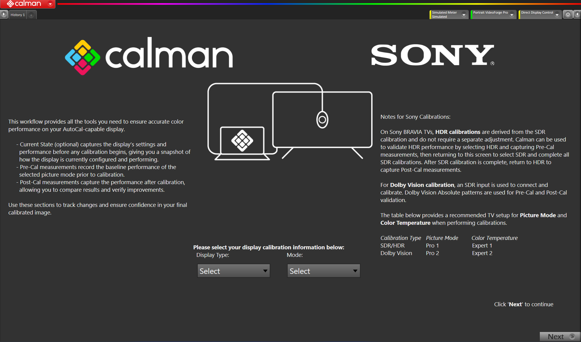 注意:ソニー ブラビアでは、HDR/DolbyVisionのキャリブレーションはSDRキャリブレーションから派生するため、別途HDR/DolbyVisionのAutoCALキャリブレーションは不要です。
