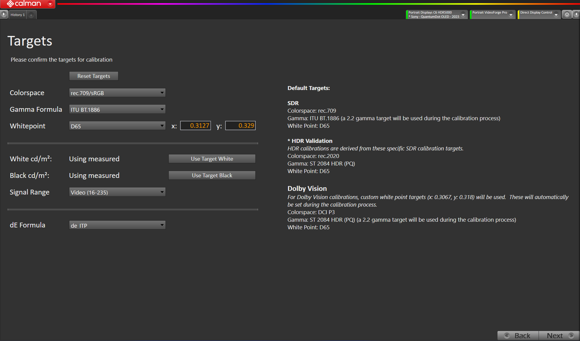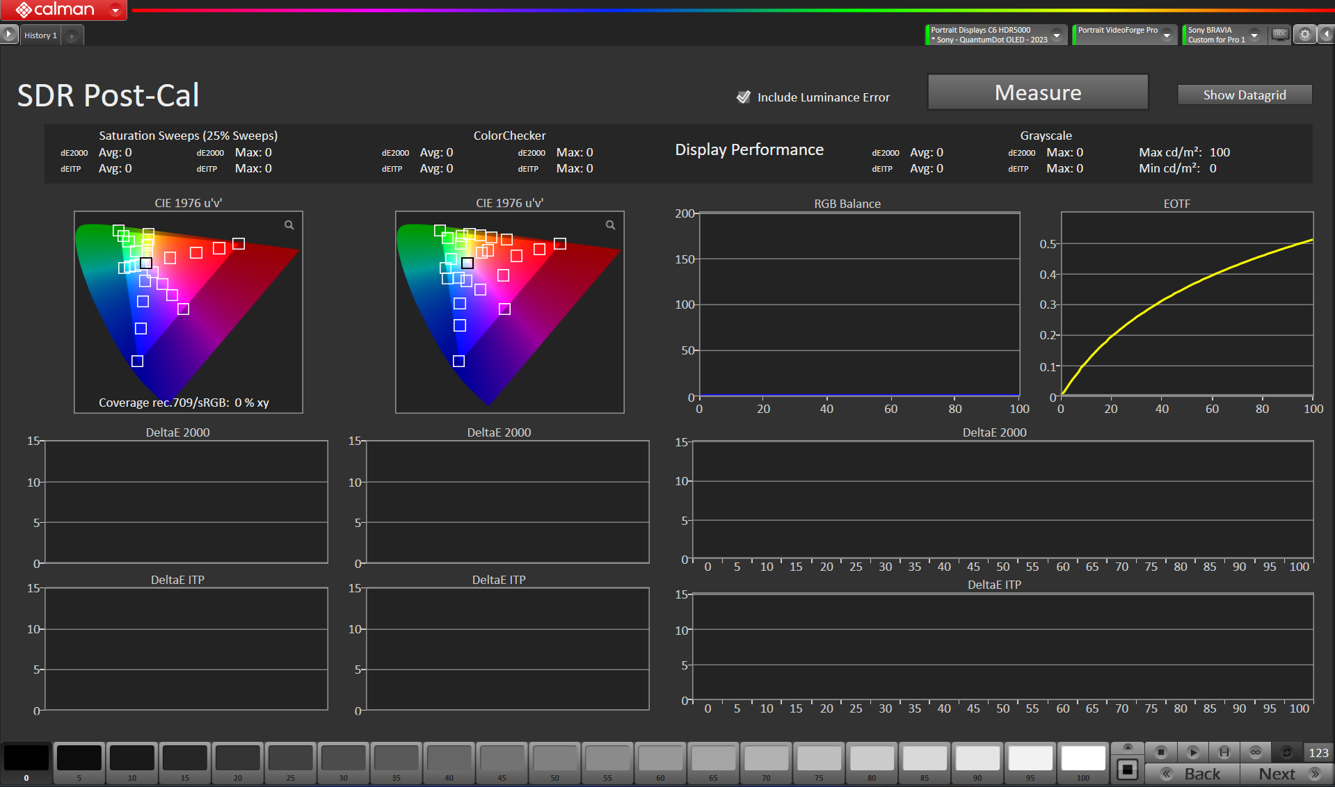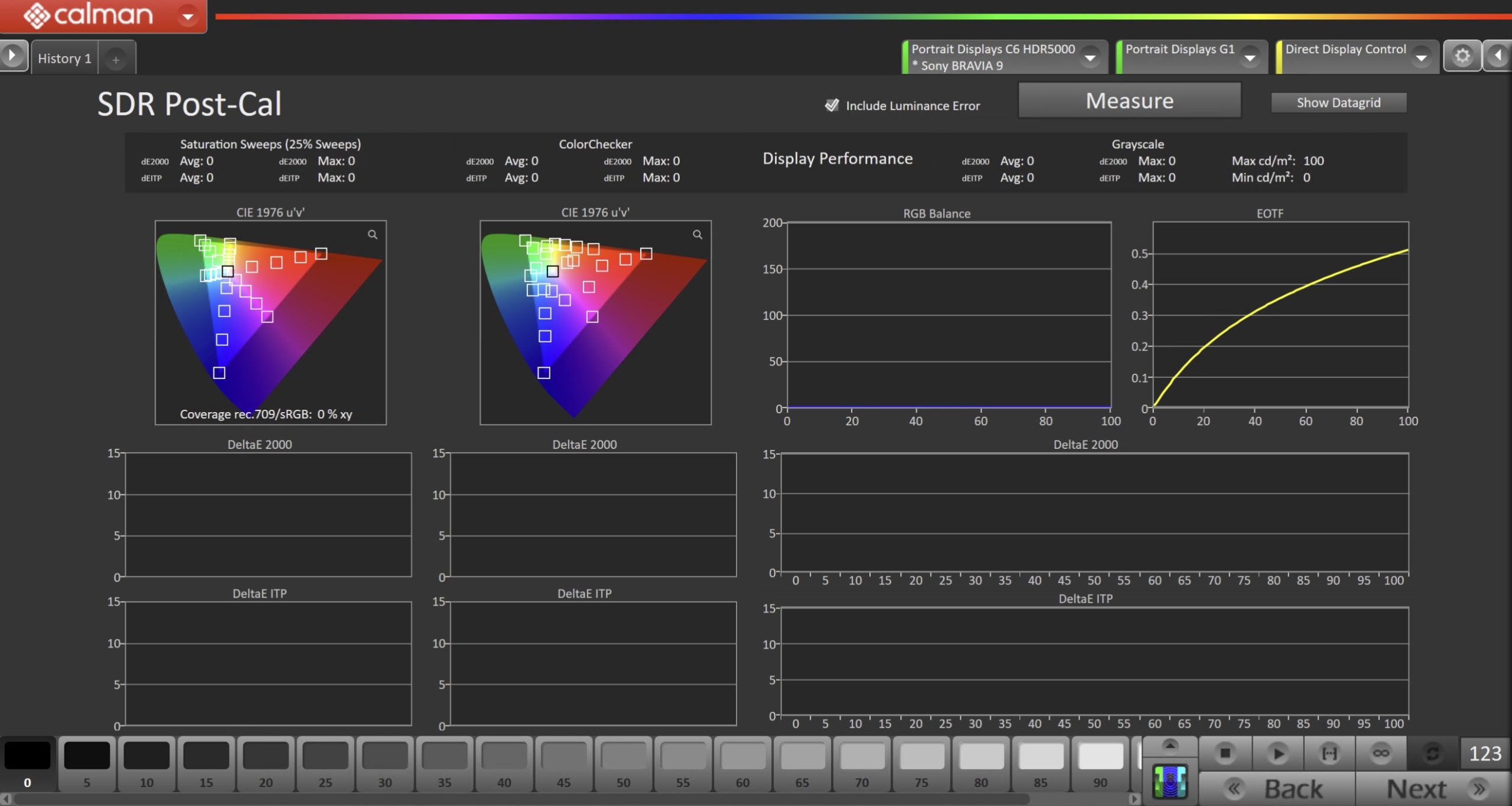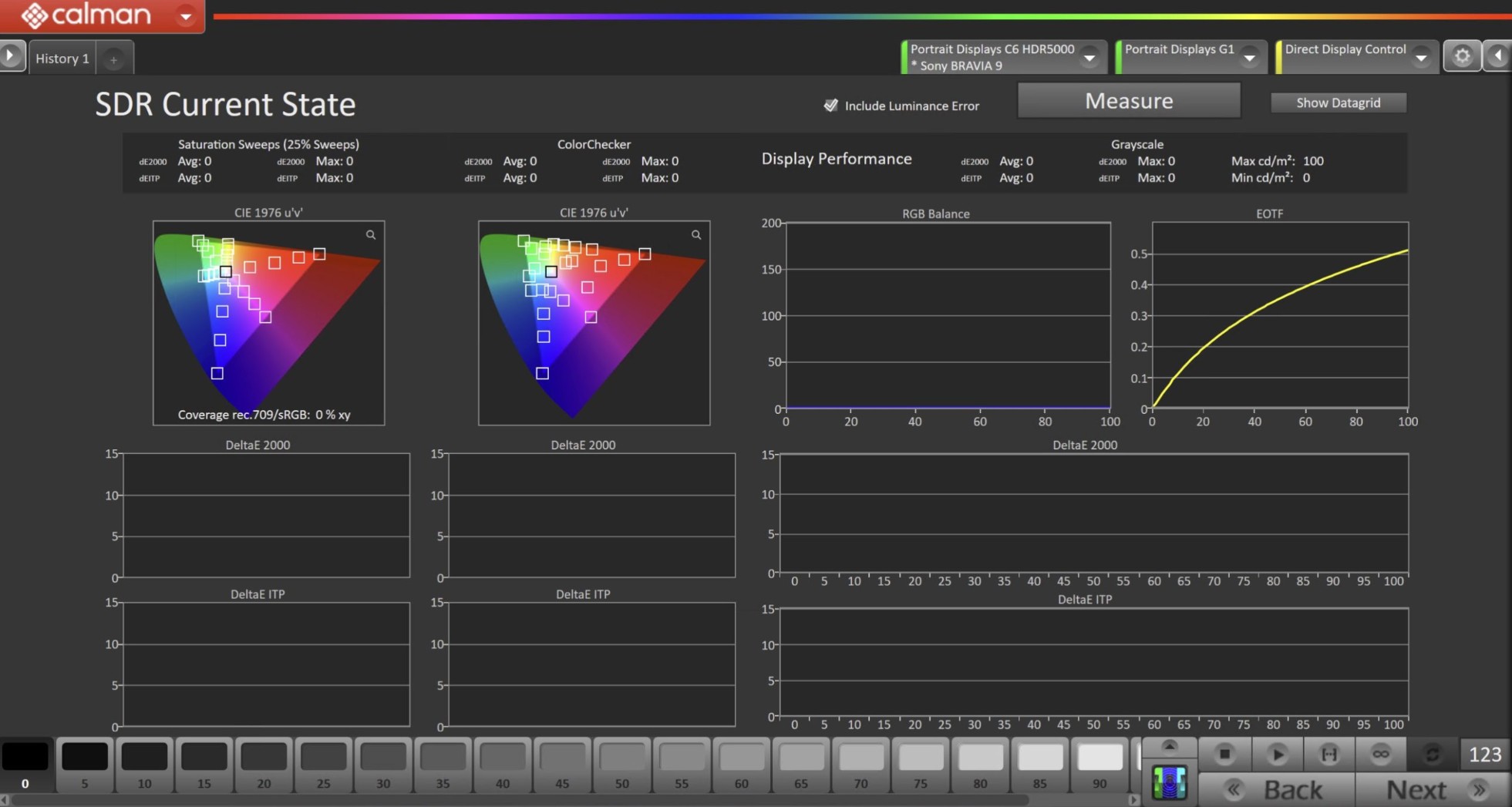 ・Calmanを使用してHDRパフォーマンスを検証するには、HDRを選択してキャリブレーション前の測定値を取得し、この画面に戻ってSDRを選択し、すべてのSDRキャリブレーションを完了します。SDRキャリブレーションが完了したら、HDRに戻ってキャリブレーション後の測定値を取得します。