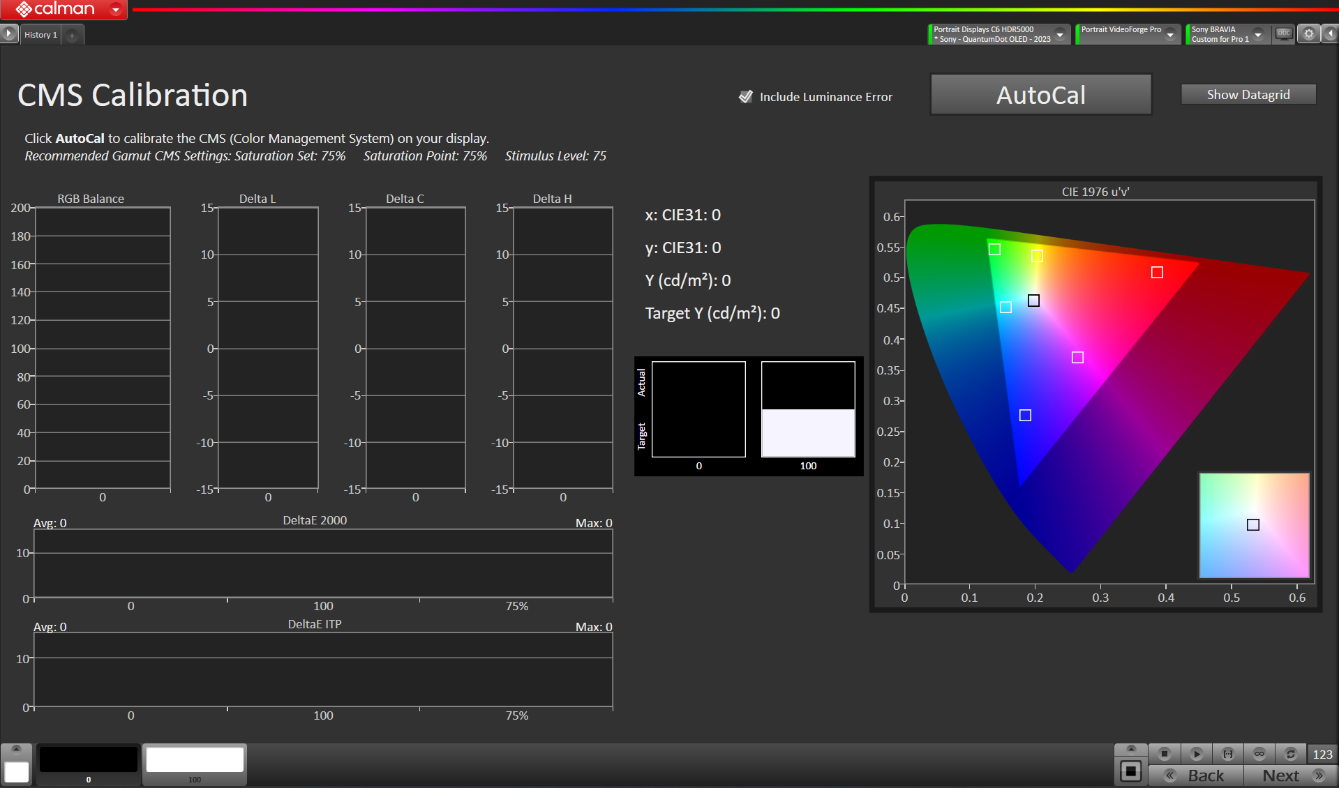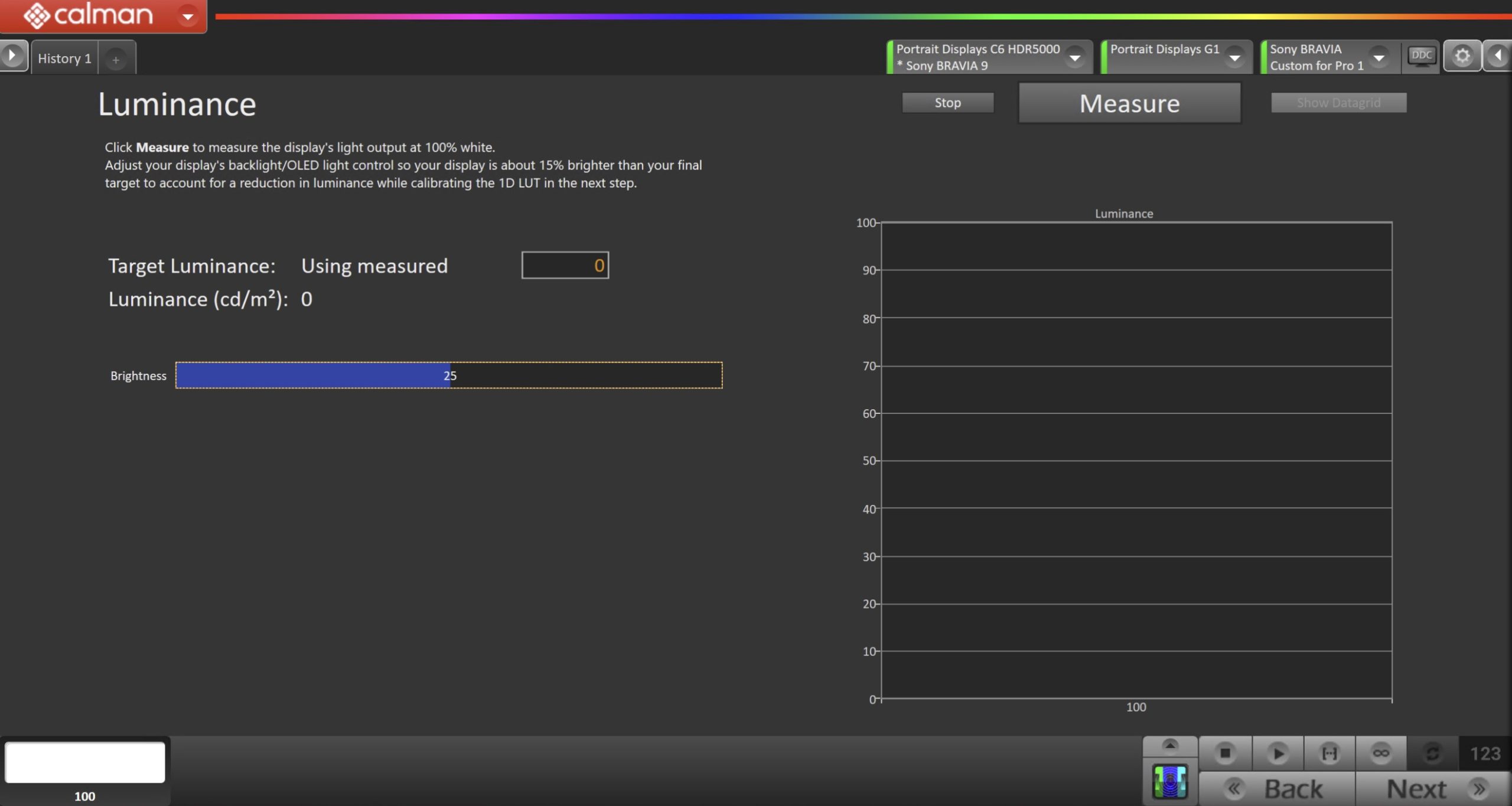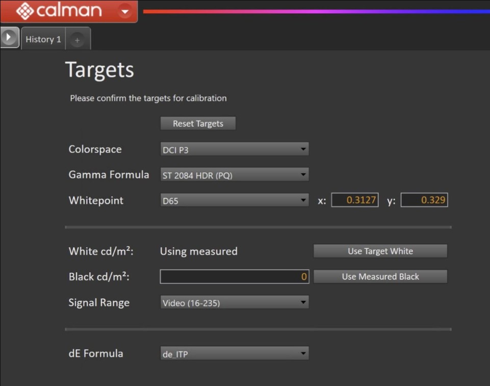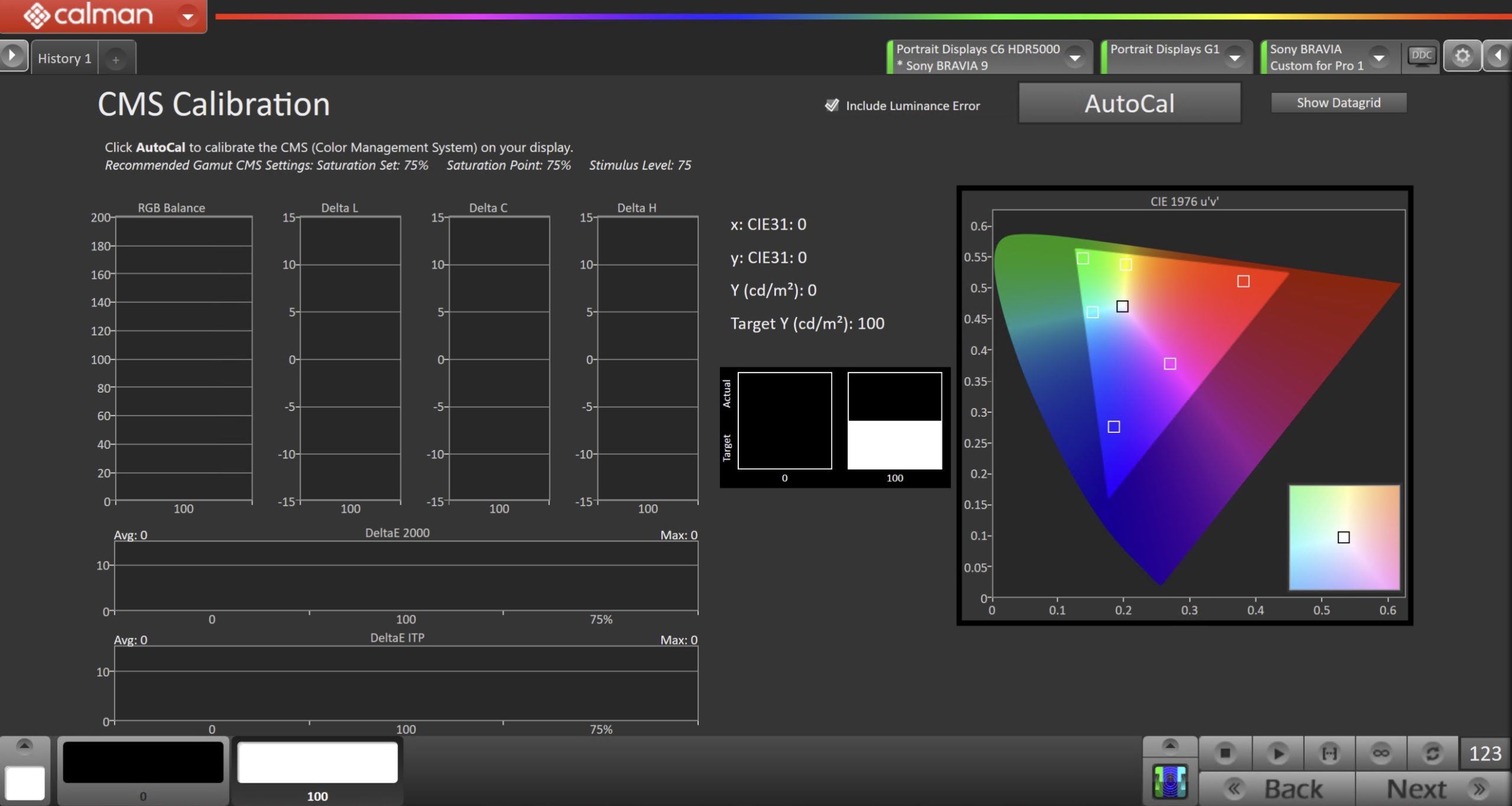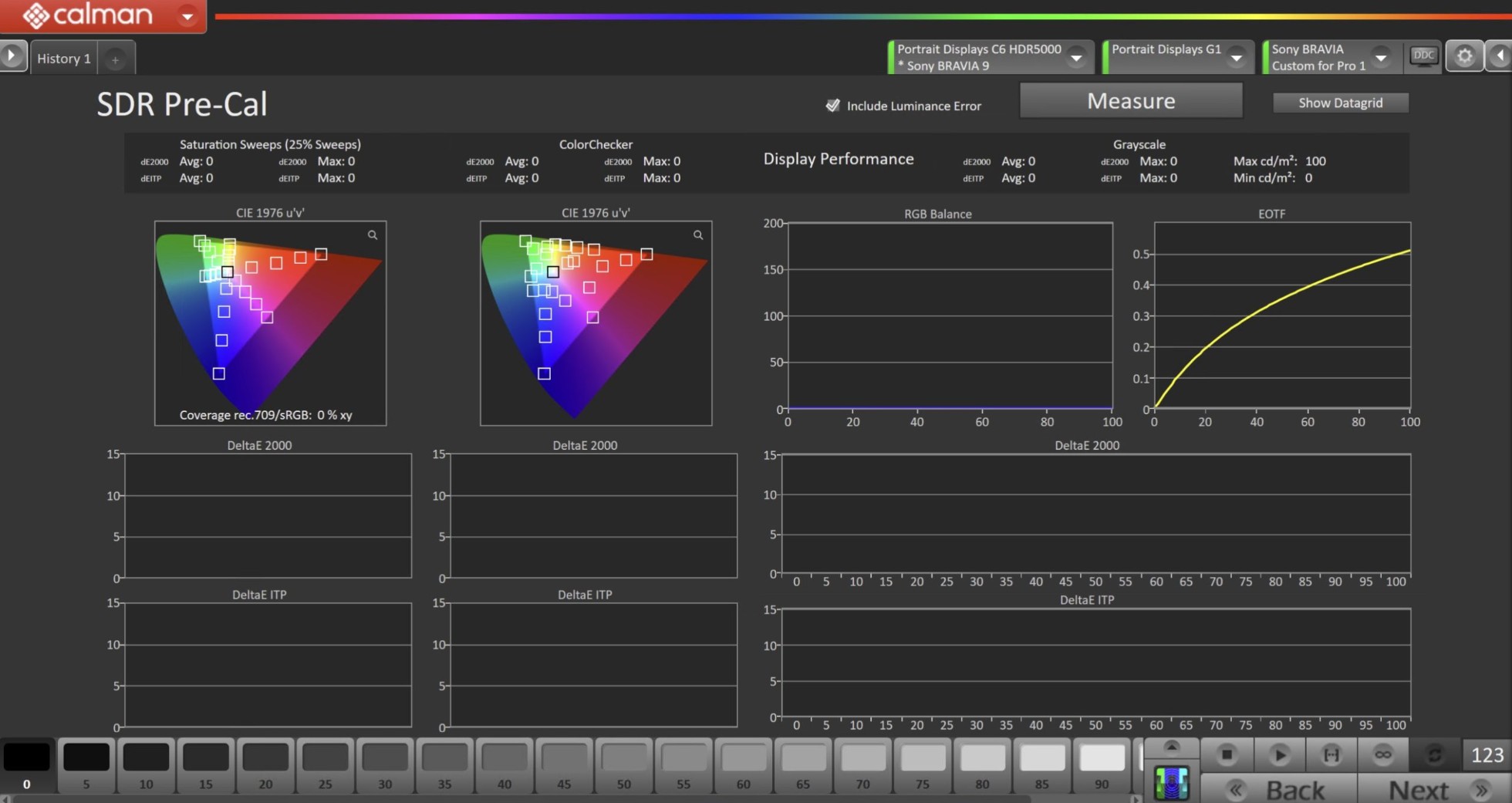 ・Calmanを使用してHDRパフォーマンスを検証するには、HDRを選択してキャリブレーション前の測定値を取得し、この画面に戻ってSDRを選択し、すべてのSDRキャリブレーションを完了します。SDRキャリブレーションが完了したら、HDRに戻ってキャリブレーション後の測定値を取得します。