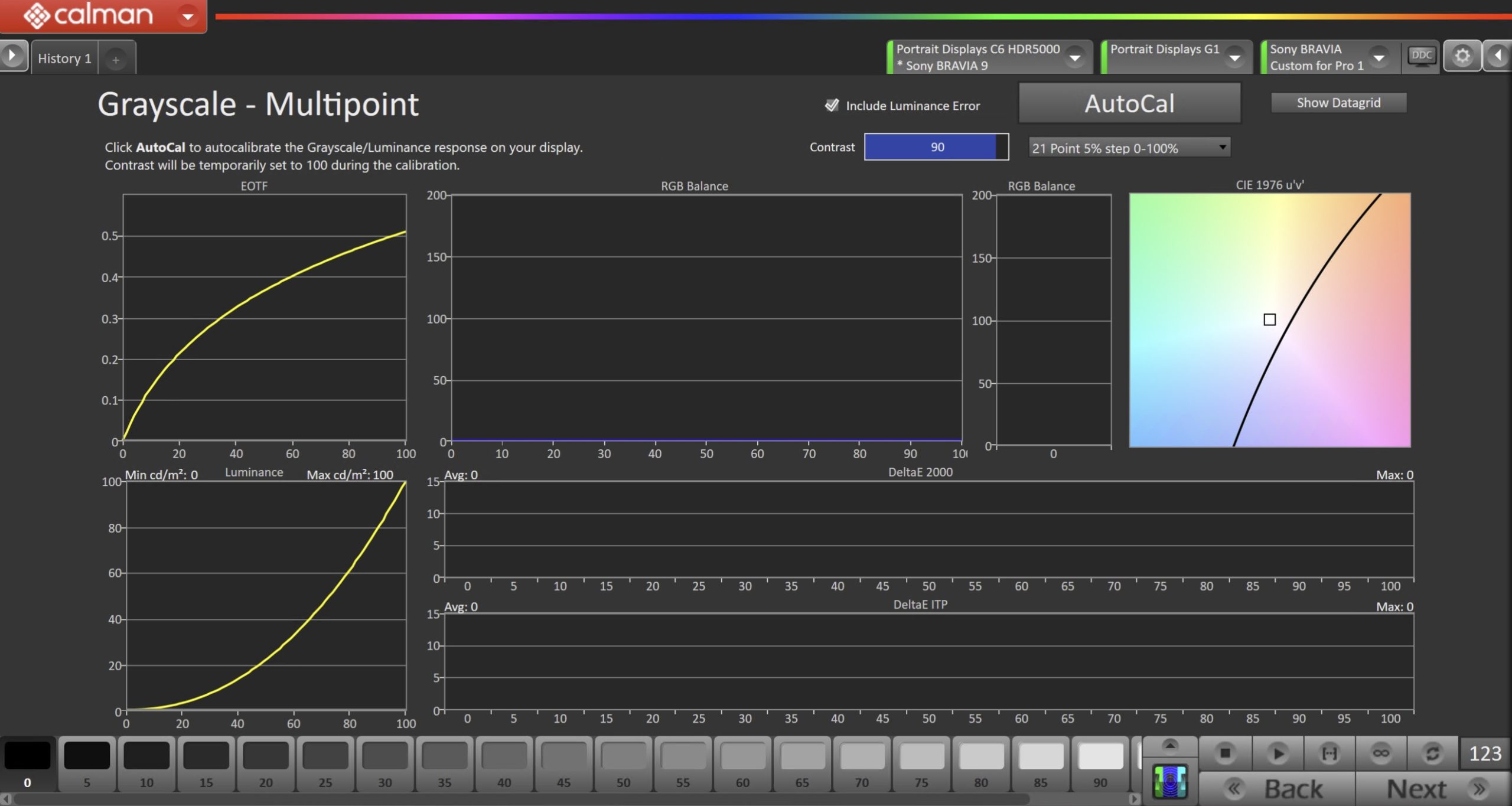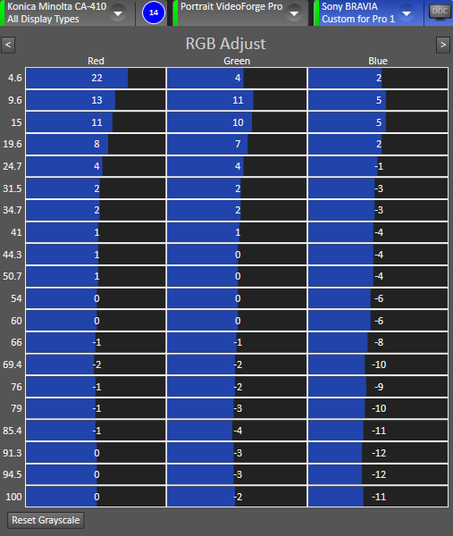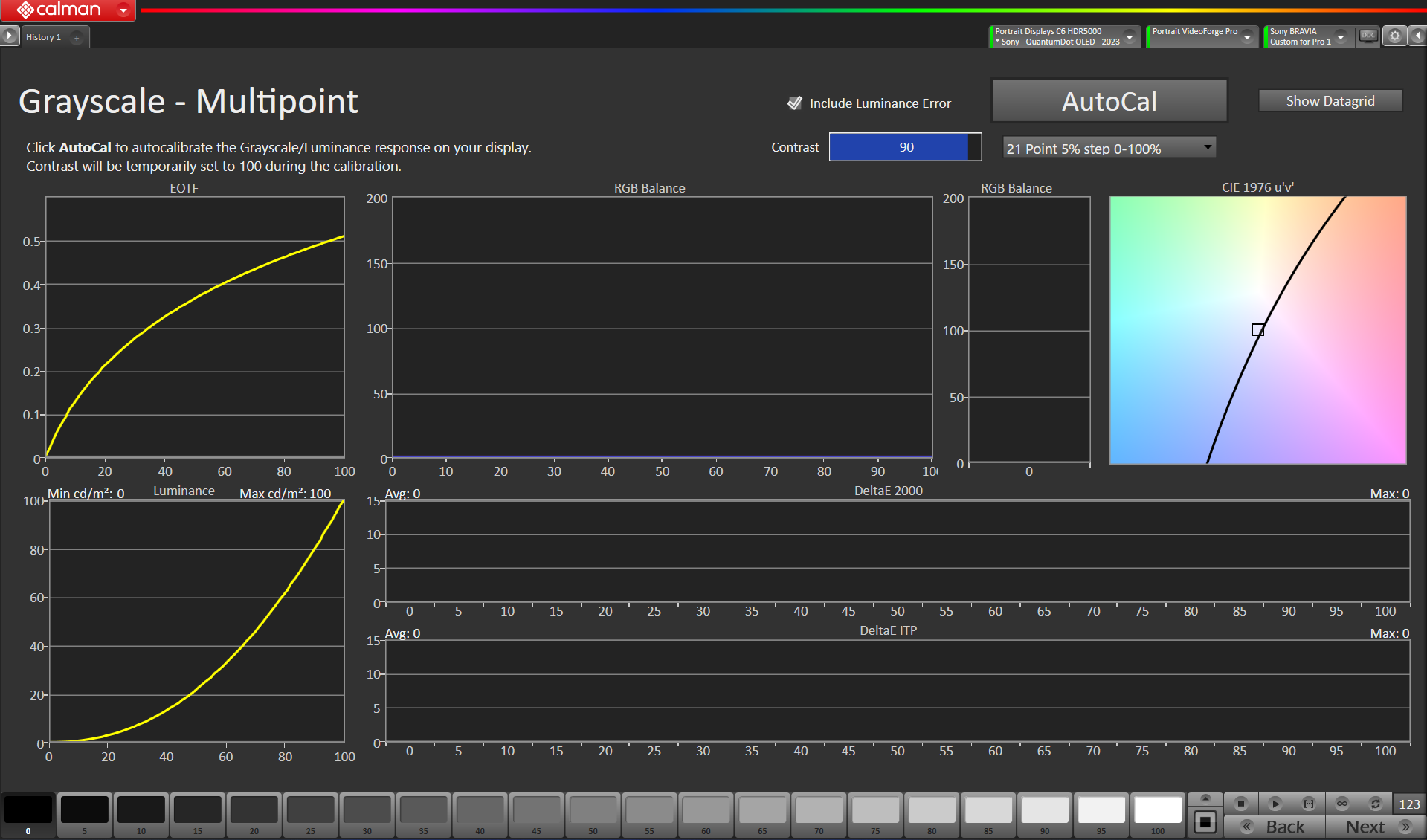 ここで、Calman はマルチポイント グレースケールを調整します。