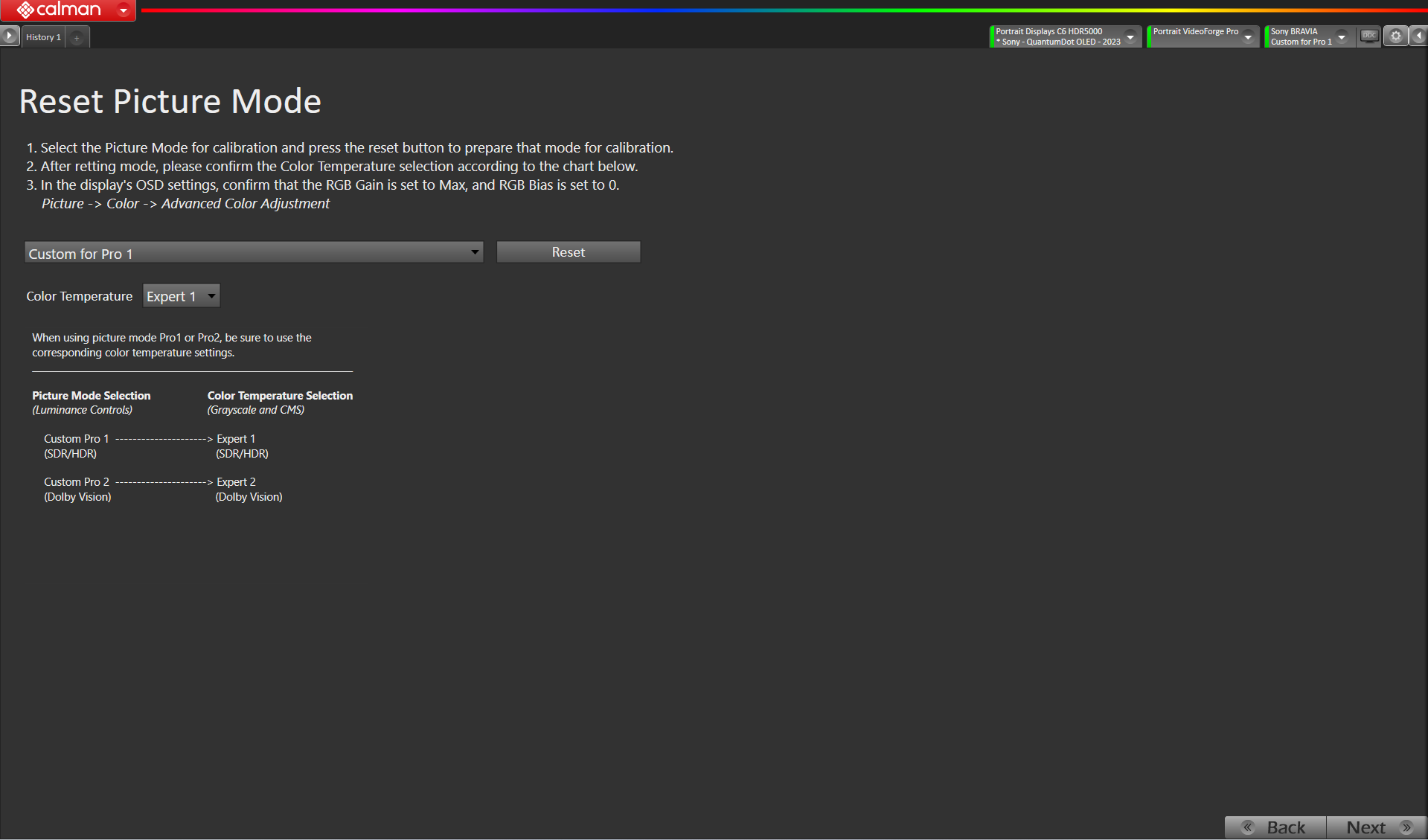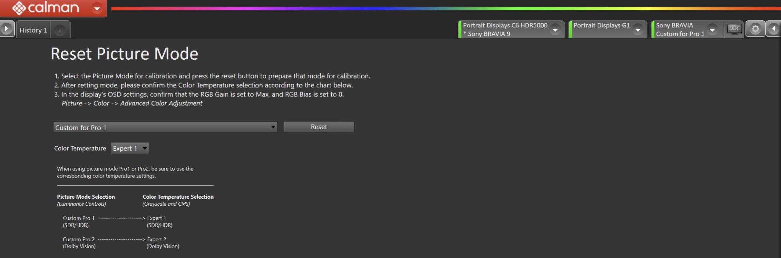・ここで、Calman 画像モードは、キャリブレーションの準備のためにリセットします。