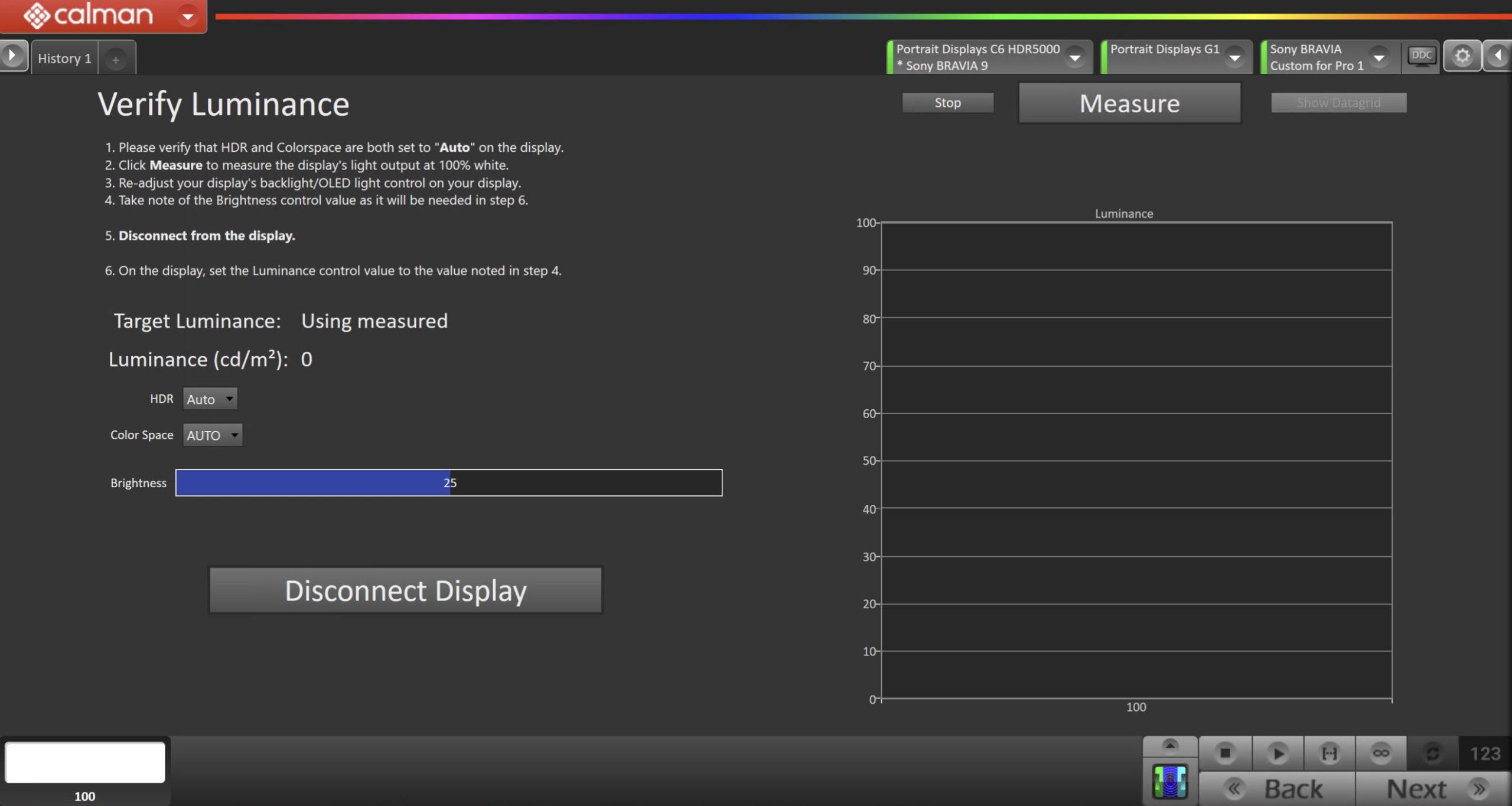 注意:現在、Calmanとブラビア接続をDisconnect Displayすると、明るさ設定が初期設定に戻る不具合が残っています。当面は、4でメモした明るさ数値を、設定し直してください。
