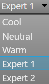 CMS (カラー マネジメント システム)やマルチポイント グレースケールなどの詳細設定は、選択した色温度(Expert1、Expert2 など) の箱に保存されます。
