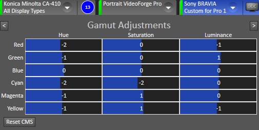 このページでは、Calman は組み込みの CMS コントロールを介して色域を調整します。